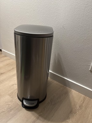 But arrived today and looks great. Is a bit shorter than I expected but matches the description height so that's on me. Slow smooth closing so no noise. overall great trash can, especially with the removable inside, good for cleaning and taking it out. Only problem is stainless steel is prone to toddler hand smudges. Also very sturdy , my old plastic trash can was very easily tippable, this one is solid.