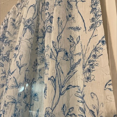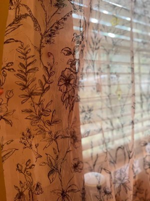 [This review was collected as part of a promotion.] Love these curtains. They are super lightweight and let the light through. I love the texture it is a soft, crinkly feel to it. They were super easy to put up on a rod and we’re just the right length! The design itself is a beautiful floral design. Love these!