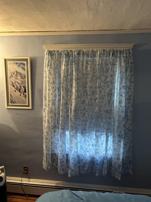 Beautiful and just was I was looking for. Wanted a sheer curtain for my bedroom and love the blue accent. It brightened my space, which was a plus!! There is a tag on the top of each panel that must be removed, placement of that was incorrect by placing at the top. Overall, great inexpensive find!