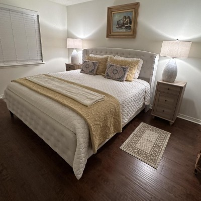 - 【Elegant & Tall Wingback Headboard】With its 51" tall wingback headboard, deep button tufting, and delicate double nailhead trim, this bed frame adds a soft, welcoming charm to your room