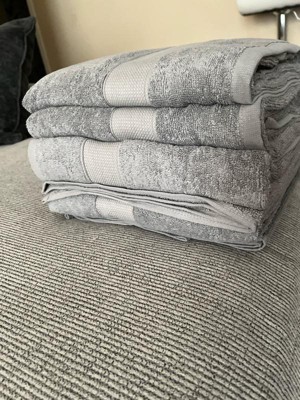 [This review was collected as part of a promotion.] These towels have been a very useful addition to our bathroom. The gray color is nice and neutral, and hides stains well. They are a good size for everyday showers, as they are not overly large, but still large enough to wrap yourself up in. They absorb very well, and still perform beautifully after being washed several times. They are not the softest towels, but they are quite absorbent and get the job done.