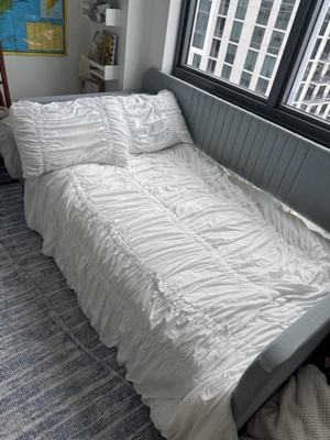 This 510 Design Rosaline Ultra Soft Brushed Microfiber Ruched Comforter Set transforms the bedroom with its romantic and soft design. The cozy ruched design, adorned with delicate bow ties, adds a touch of effortless shabby chic charm, creating a dreamy, inviting space.