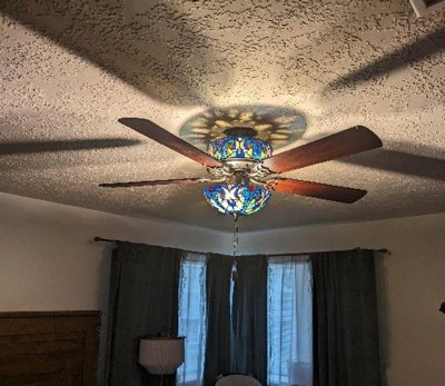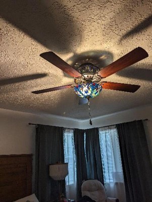 52" LED Tiffany Style Stained Glass Halston Lighted Ceiling Fan Black - River of Goods: 5-Blade, Reversible Motor, E12 LED
