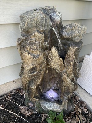 52" Resin Waterfall Tree Trunk Fountain with LED Lights Taupe - Alpine Corporation: Electric, 60-Gallon Capacity, Ground Freestanding