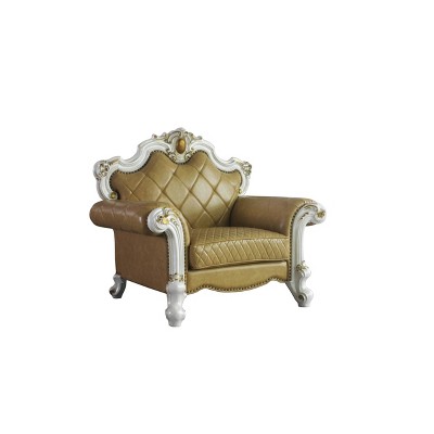 52" Versailles Accent Chair Ivory Fabric/Bone White Finish - Acme Furniture: Traditional Crescent Design, No Assembly Required