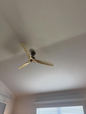 We love this fan. It’s quiet & we’ve had many compliments. It comes with a wall bracket to hold the remote to turn off & on & select the speed of the fan. It definitely pushes the air around in your room. We also loved the style. Resembles a plane prop in a way. We put it in our guest bedroom.