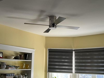 This fan is just ok. The appearance is fine, but the blades are a bit cheap and cardboard looking and thin. It's a style update from my 13 year old fan but I like the function of my old fan better. The light is my major complaint, super bright - blindingly bright, but no way to dim it. Don't look directly at it, you will see spots for a while. Ok, so I won't be using the light unless I absolutely have to. Good thing there are lamps in the room. The fact that it hugs the ceiling is nice and that aspect reduces vibration... but there is a lot of wind noise when the blades are in motion. I believe that is due to the design of the blades... more thought could have been put into making them more aerodynamic. My old fan was also 52" but was 5 blades, this one is 4 blades, which greatly reduces the amount of air movement. The blade direction can be changed by flipping a switch on the side of the housing. It goes better with my modern style bedroom furniture, just wish I liked the function as much as my old fan.