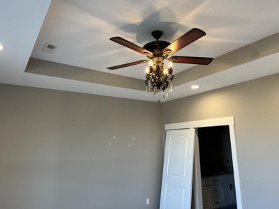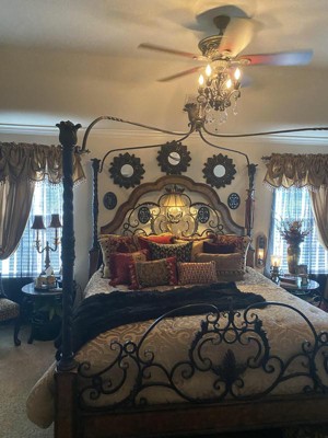 Beautiful combination of masculine and feminine style for my master bedroom...more beautiful than I could have hoped for, and he liked it too. Even the electrician/installer thought it was gorgeous. The online pictures don't do it justice. The only issue I have is with the 4w max bulb wattage on the light kit. I have it installed the fan on a 10' ceiling with a 12" downrod, and the light kit doesn't provide as much light as I would like. the 4w LED bulbs that came with it may be "warm" and need to be switched to 4w LED "daylight" bulbs with a dimmer switch to get the desired brightness.