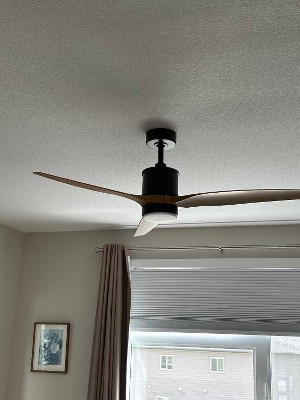 Love the color, style and remote to control fan and dimmer. The fan is so quiet. Would reco 3' down rod vs 2' for 13' ceiling height. The light is not as bright but it is pretty high up on our vaulted ceiling. Highly recommend.