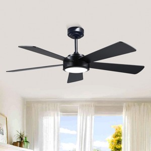 With its sleek modern design, this 52-inch downrod ceiling fan effortlessly blends style and functionality, enhancing any living space. Featuring a chic black or white finish and six reversible plywood blades (dual-sided for versatility), it adds a subtle decorative touch. The integrated LED light offers three adjustable color temperatures (3 CCT), making it ideal for rooms with low ceilings. Its contemporary aesthetic seamlessly complements industrial, modern, and farmhouse interiors, creating the perfect balance of comfort and sophistication