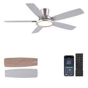 Adding a great addition to your modern house with this 52 inch Ceiling Fan. The decorative ceiling fan features a black or white finish fixture and 5 reversible dual side plywood blades. It is completed with LED integrated 3 CCT light, perfect for low ceilings. This modern design perfectly balances style to fit into industrial and modern and farmhouse decor.