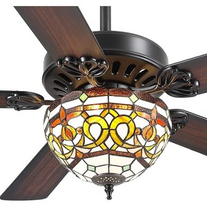 52 Inch Wood Blade Ceiling Fan with Light and Remote Tiffany Light Cover - 1 of 4