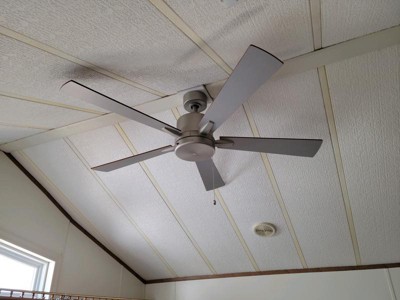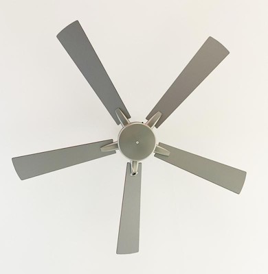 [This review was collected as part of a promotion.] This Kichler Bowen 52" Brushed Nickel Ceiling Fan is great quality. It looks perfect in our living room and matches my decor with its contemporary styling. It is energy efficient and circulates the air easily. The pull chain makes it very easy and convenient for turning on/off and changing the fan speed. There are five blades. This fan was very easy to install and is quiet which is great. I would recommend this ceiling fan.