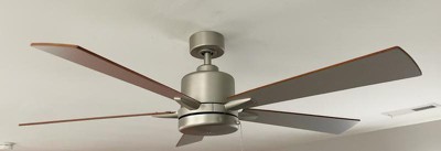 - Brushed nickel finish. Five silver - walnut finish reversible blades.