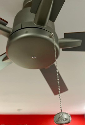 [This review was collected as part of a promotion.] The fit and finish of this fan is top notch. It is whisper quiet with absolutely no wobble, even on high, with no balancing required. It is the smoothest running ceiling fan I have encountered. The brushed nickel finish with the “silver” side of the blades down is a unique combination that has received many compliments from our guests. This fan comes with a 4.5” down rod and enough wiring for a much longer down rod for high ceilings. Installation is straightforward with great instructions. The 5 blade design moves plenty of air. A simple, manual switch on the side of the fan changes the rotation direction for the different seasons as well as a pull chain for the 3 speeds. Kichler offers a wall mounted speed controller as well as Optional Downlights, which the unit is wired for. Overall the fan is pleasing aesthetically with my only criticisms being the small silver plastic plug in the bottom center of the fan. In an otherwise well thought out design, it seems almost like an afterthought. The other being that when you choose the silver side of the blades to be shown, the edges are still the “walnut” color. While it provides a bit of contrast, it may not go with other colors in the room. Not a deal breaker, but something to think about. All in all I am quite pleased with this fan, great addition to our home that I do recommend.