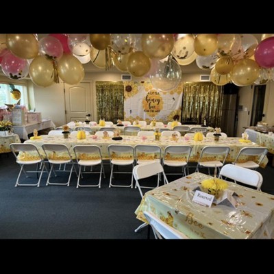 - Lovely gold fringe backdrop measures 54" wide x 70" long