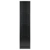 - Black shelf with wainscoting panels, made from composite wood