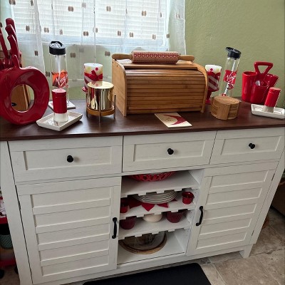 - Step into a home that feels both welcoming and organized with this versatile farmhouse buffet cabinet. Its elegant linear design and classic detailing bring a sense of warmth and timeless style to any dining room, kitchen, or entryway. Imagine hosting friends and family as you easily reach for glassware, coffee, or snacks, or simply enjoying a clutter-free space that’s as practical as it is beautiful. This cabinet adapts to your needs—whether you’re displaying décor, setting up a coffee bar, or keeping daily essentials tidy—effortlessly blending into your everyday routines.