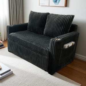 53" Corduroy Recliner Sofa Bed with Pull-Out Sofa, 5-Position Backrest & USB Charging