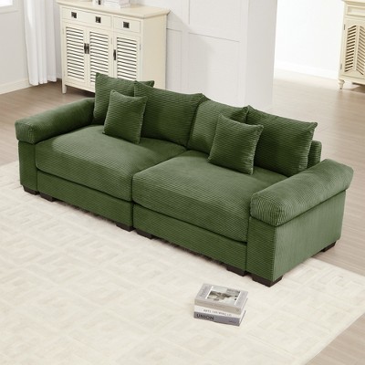 54.3" Corduroy Fabric Oversized Modular Sectional Couch with Extra-Thick Armrests, Throw Pillows and Ottoman