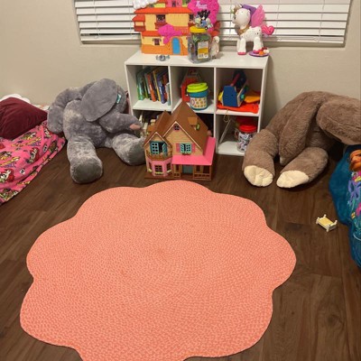Add casual texture to your kiddo's space with this Braided Scallop Rug from Pillowfort™. This round cotton rug makes a great accent in your child's bedroom, playroom or nursery decor. It features a machine-made braided design for a pop of texture, along with scalloped edges for playful flair. Complete with a cotton backing, the rug sports a sleek flat pile construction that can easily be spot cleaned for effortless care.