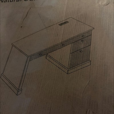 54" Executive Desk with Drawers, Fluted Home Office Desk with File Cabinet, Wood Computer Writing Desk, Conference Table for Living Room, Brown