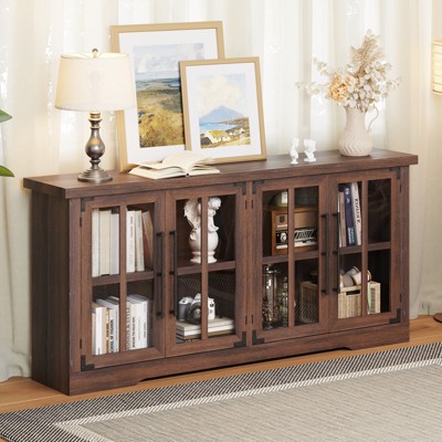 54" Farmhouse Coffee Bar Cabinet, White Sideboard Buffet with Rack, 3 Drawers, Door Storage Shelves - Panipeachy