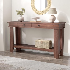 54-Inch Long Console Table with Drawers, Wooden Rectangular Entryway Table w/Open Storage Shelf
