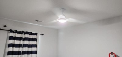 [This review was collected as part of a promotion.] I am impressed with the Kichler ceiling fan. The packaging was sturdy and the setup process was straightforward, taking approximately 30 minutes. The 54-inch fan features etched case opal glass with white blades, giving it a simple and elegant appearance. It is installed in my son's bedroom and operates quietly, which is ideal as my toddler is easily disturbed by noise. Despite struggling to maintain a cool temperature in the upstairs room, even with the air conditioning set to 69°F, this fan has made a significant difference. My son's room now stays a comfortable 70°F, a noticeable improvement from the higher temperatures we previously experienced. Kichler consistently delivers high-quality products and I highly recommend this fan for anyone in need of a reliable and effective cooling solution.