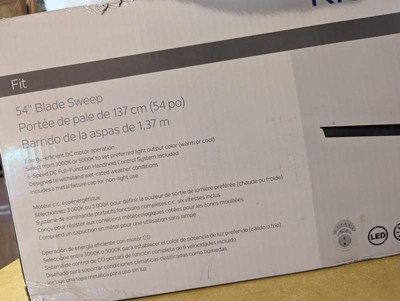 [This review was collected as part of a promotion.] Great Ceiling fan! Love the look of the fan. The perfect size for our room at 54 inches! It did not take very long to get in put up and it lets out a nice amount of light! I like the different speeds it can go and that it is wet/dry approved!