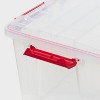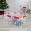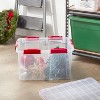 Safeguard your holiday treasures with the Brightroom™ 54 Quart Gasket Box! This waterproof and airtight storage solution will protect your cherished holiday ornaments, keepsakes, and linens so they stay merry and bright year after year. The gasket seal and tight-fitting latches keep the lid secured to the base, while keeping moisture, air, dust, and pests out. Festive red accents make it easy to locate and retrieve decorations, while the clear bin and lid let you see contents at a glance. Recessed lids allow same-size boxes to stack securely, maximizing vertical storage space.