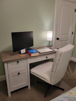 We’re thrilled to hear that you’re enjoying your new desk! It’s great to know that it meets your farmhouse aesthetic and that you find it both sturdy and functional. We’re especially pleased that the drawers and magnetic keyboard drawer are working well for you. Thank you for supplying pictures of your finished desk and for sharing your positive experience. Your satisfaction is important to us, and we’re glad we could provide a product that meets your needs.