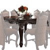 Irresistibly inviting, the Versailles collection displays the unrivaled beauty of the traditional dining. The dining table reflects highly decorative base with oversized scrolled feet, and the upholstered and tapestried chairs with the deep button tufted and Nailhead trim accents, presenting a classic character and luxurious detailing dining room for you. This counter height collection is available in two different colors, cherry oak and bone white, making you flexible choice on home decor.