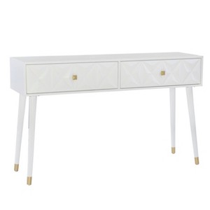 55.5" Geo Glam Console 2 Drawer with Gold Knobs Bright White - Linon: Entryway Narrow Storage, Modern Design