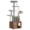 - ? Multi-Level Adventure Playground: 55.1"H tower features 4 platforms: Sisal-wrapped scratching posts, dangling pom-pom toys, transparent hammock, and 15"-deep condo.