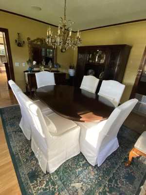 I love my new chairs. Such a compliment to my antique table. The slip covers are perfection , fabric is high quality, and the casters a plus.