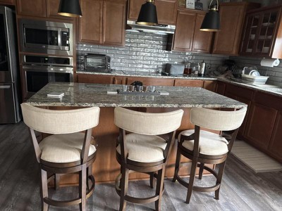 With traditional touches gracing this contemporary designed piece, the Lev counter stool from the 55 Downing Street brand is a welcome addition to many kitchen styles. The wood frame shines in a distressed walnut finish, the dark color allowing the linen seat to really pop. Entertain guests at your kitchen counter with this comfortable seat.