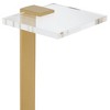 - Shining gold finish base and stem. Clear acrylic tabletop.