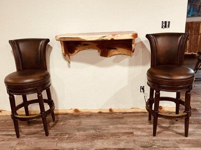 Although a bit pricey (especially when purchasing 5), we are very impressed with these bar stools, very easy to put together and great quality. Exactly the classy look we were looking for in our basement man cave! We wanted to add high class to our very rustic design and these bar stools were the perfect finishing touch! The swivel back feature is awesome. They are also very comfortable to sit in which was a huge selling point for us. Would recommend!