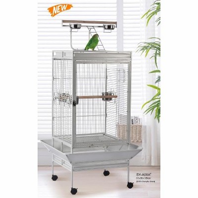 - Included Components: Rolling stand, 4 wooden perches, 4 external food containers