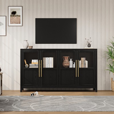 55 Inch Sideboard Buffet Cabinet with 4 Glass Doors Large Buffet Cabinet with Storage Modern Farmhouse Cabinet for Kitchen Dining Room Living Room