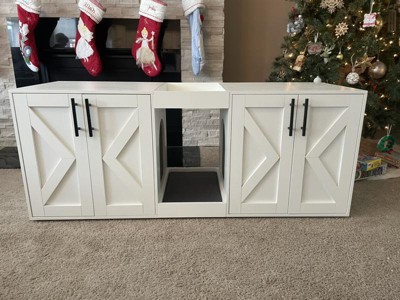 55" Large Cat Litter Box Enclosure for 2 Cats, Hidden Cat Litter Box Furniture with Double Room and Cushion