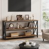 Spacious Storage Space: This long console table with storage measures 55.1 in x 13.4 in x 30 in with a wide desktop, and 3 tier entryway table design providing ample storage space where you can display your favorite photos, books, and decorations.Versatile Console: With a stylish and simple design, this entry way table complements various home decor styles. Wood console table works perfectly as an entryway table, sofa table, hallway table, behind couch table, or even a TV stand.Strong and Durable Construction: The foyer table top thickness is 0.6 in thick and made from high-quality MDF board with an V-shaped design on the sides for added stability, and the Rustic Brown console table for the entryway is durable and scratch-resistant.Industrial Style: The elegant design and meticulous craftsmanship of these foyer tables for the entryway embody the simplicity and warmth of industrial style. Whether placed in the entryway, behind the couch, or hallway, the metal entertainment center console adds a natural and inviting ambiance to your home.Easy Installation: The package includes detailed instructions for easy assembly of the narrow console table. No professional skills or experience are required - simply follow the step-by-step instructions to save time and effort.