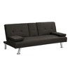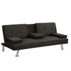 55" PVC Sofa Bed with Armrests, Wood Frame & Cup Holders