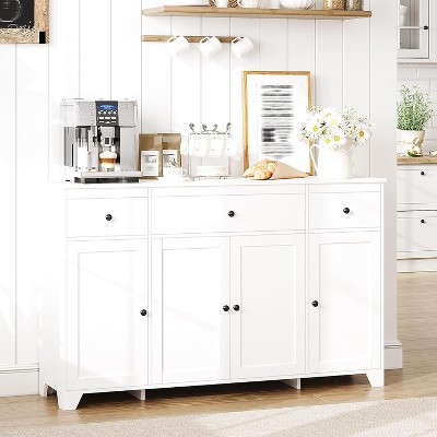 55" Sideboard Buffet Cabinet with Storage, Minimalist Kitchen Storage Cabinet with 3 Drawers & 4 Doors, Farmhouse Buffet Console Table Coffee Bar