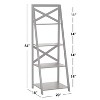 - Features four (4) shelves arranged in ascending size from top to bottom