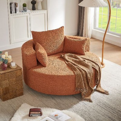 56.3'' Chenille Swivel Upholstered Round Sofa Chair with 360¡ã Swivel Base, 36.5'' Deep Seat, 3 Removable Pillows and Modern Circular Design