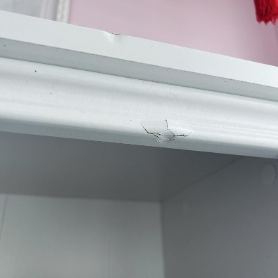 Dented upper shelf and trim. Probably occurred during shipment. Otherwise a nice bookshelf.