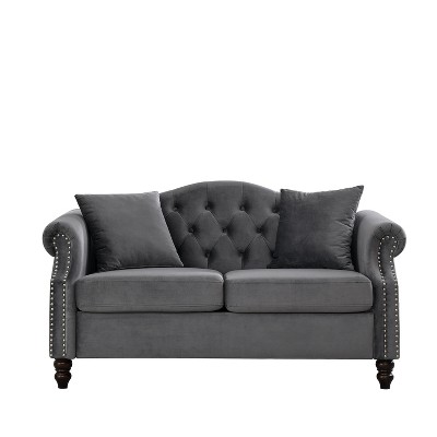 57" Velvet Chesterfield 2-Seater Sofa with Rolled Arms & Nailhead Trim