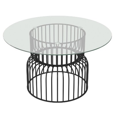 HOMES: Inside + Out 58" Darrah Modern Rectangle Glass Top Dining Table Black/Clear: Steel Frame, Seats 6